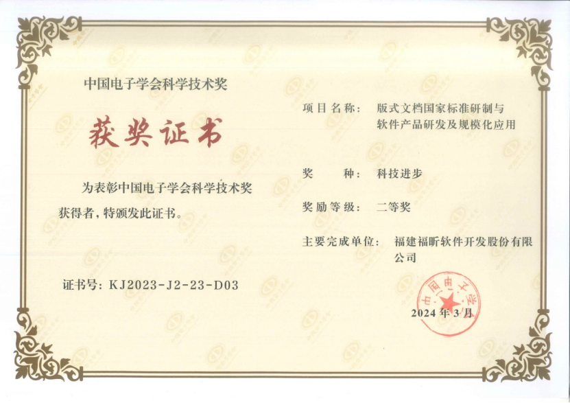 科技浪潮下,福昕軟件再添榮耀新篇章!近日,中國電子學(xué)會公布“2023年度中國電子學(xué)會科學(xué)技術(shù)獎”獲獎名單,由福昕軟件申報的“版式文檔國家標(biāo)準(zhǔn)研制與軟件產(chǎn)品研發(fā)及規(guī)模化應(yīng)用”項目榮獲科技進(jìn)步二等獎。 中國電子學(xué)會科學(xué)技術(shù)獎是經(jīng)國家科學(xué)技術(shù)獎勵工作辦公室批準(zhǔn)設(shè)立的獎項,是全國電子信息領(lǐng)域的最高獎,旨在獎...